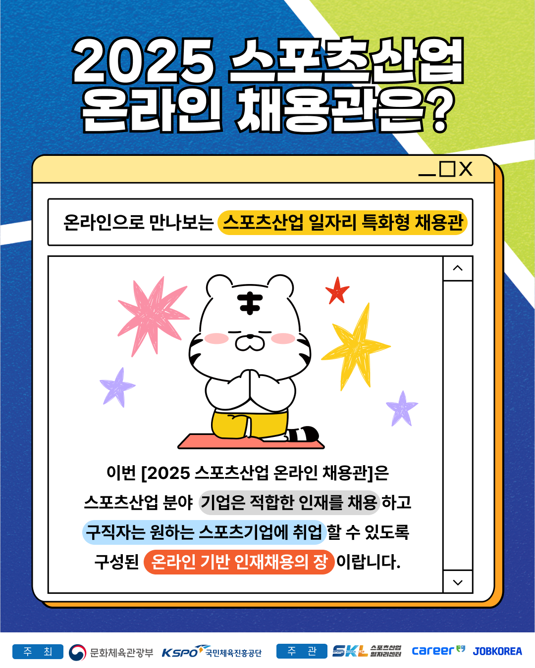 1. ¡°º»¼ºñ½º¡±¿¡¼ Á¦°øÇÏ´Â ÀÔ»çÁö¿ø½Ã½ºÅÛÀ» ÅëÇØ 'ÀÌ¿ëÀÚ'°¡ µî·ÏÇÑ À̷¼·Î ¿øÇϴ ä¿ëÁ¤º¸¿¡ ÀÔ»çÁö¿ø ÇÒ ¼ö ÀÖÀ¸¸ç, ¡°ÀÌ¿ëÀÚ¡±°¡ µî·ÏÇÑ À̷¼ ³»¿ëÀº ¡°2025 ½ºÆ÷Ã÷»ê¾÷ ä¿ë¹Ú¶÷ȸ¡±°¡ ÀÓÀÇ·Î ¼öÁ¤ ¹× º¯°æÇÒ ¼ö ¾ø½À´Ï´Ù.