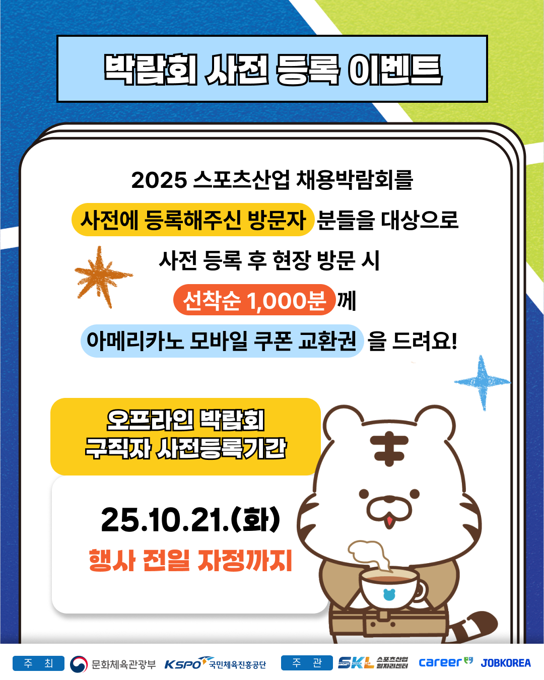 5. ±â¾÷ȸ¿ø, ÆÄ°ß¡¤´ëÇàȸ¿ø, ¼Ä¡Æßȸ¿øÀÌ ¡°2025 ½ºÆ÷Ã÷»ê¾÷ ä¿ë¹Ú¶÷ȸ¡±ÀÌ Á¦°øÇÏ´Â À̷¼ ¿¶÷¼ºñ½º¸¦ ½ÅûÇÏ¿© ÀÌ¿ëÇÒ °æ¿ì, ¡°ÀÌ¿ëÀÚ¡±°¡ °ø°³ÇÑ À̷¼ÀÇ ¸ðµç ³»¿ëÀ» ¿¶÷ÇÒ ¼ö ÀÖÀ¸¸ç, ¡°ÀÌ¿ëÀÚ¡±´Â À̵é ȸ¿ø¿¡°Ô ÀÔ»çÁö¿ø¿äû, ¸éÁ¢Á¦ÀÇ µîÀÇ À¯¼±ÅëÈ, e-¸ÞÀÏ ¹× SMS¸¦ ¹ÞÀ¸½Ç ¼ö ÀÖ½À´Ï´Ù.