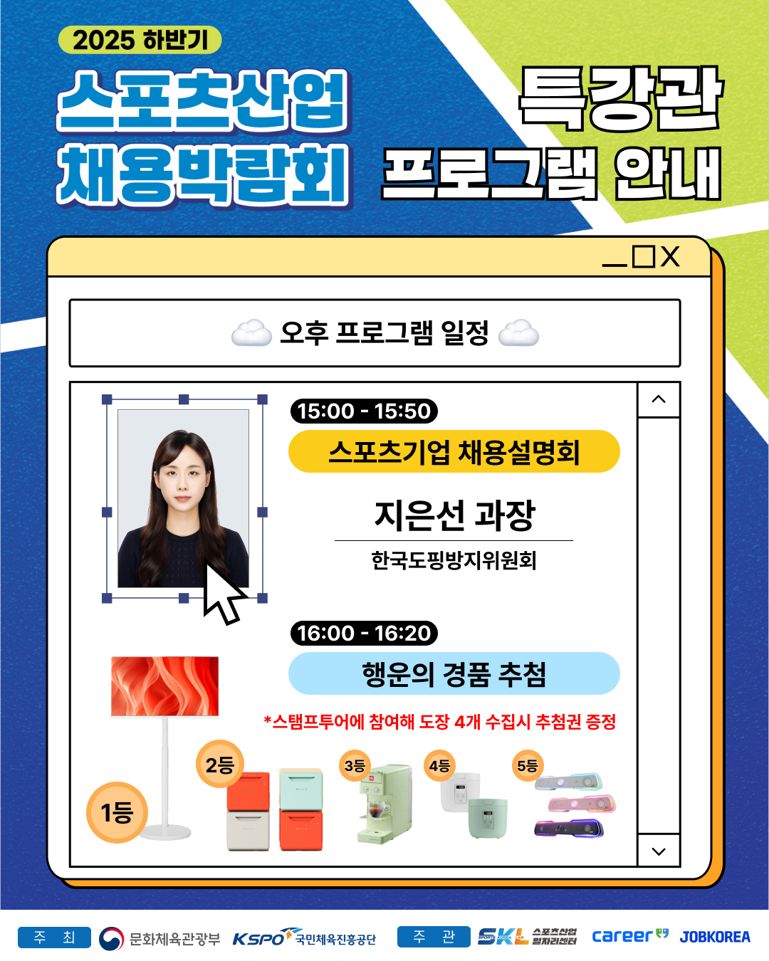 5. ±â¾÷ȸ¿ø, ÆÄ°ß¡¤´ëÇàȸ¿ø, ¼Ä¡Æßȸ¿øÀÌ ¡°2025 ½ºÆ÷Ã÷»ê¾÷ ä¿ë¹Ú¶÷ȸ¡±ÀÌ Á¦°øÇÏ´Â À̷¼ ¿¶÷¼ºñ½º¸¦ ½ÅûÇÏ¿© ÀÌ¿ëÇÒ °æ¿ì, ¡°ÀÌ¿ëÀÚ¡±°¡ °ø°³ÇÑ À̷¼ÀÇ ¸ðµç ³»¿ëÀ» ¿¶÷ÇÒ ¼ö ÀÖÀ¸¸ç, ¡°ÀÌ¿ëÀÚ¡±´Â À̵é ȸ¿ø¿¡°Ô ÀÔ»çÁö¿ø¿äû, ¸éÁ¢Á¦ÀÇ µîÀÇ À¯¼±ÅëÈ, e-¸ÞÀÏ ¹× SMS¸¦ ¹ÞÀ¸½Ç ¼ö ÀÖ½À´Ï´Ù.