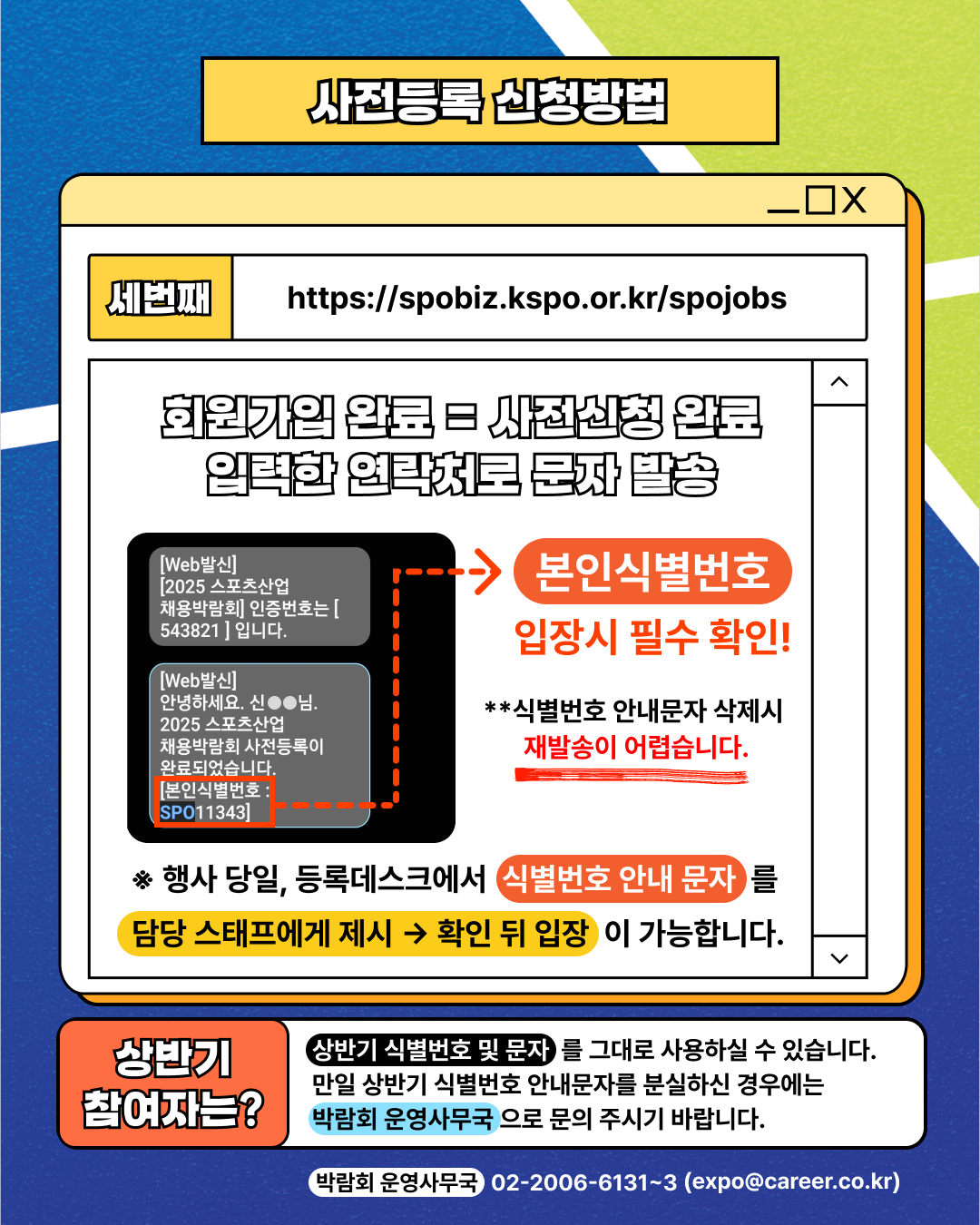 5. ±â¾÷ȸ¿ø, ÆÄ°ß¡¤´ëÇàȸ¿ø, ¼Ä¡Æßȸ¿øÀÌ ¡°2025 ½ºÆ÷Ã÷»ê¾÷ ä¿ë¹Ú¶÷ȸ¡±ÀÌ Á¦°øÇÏ´Â À̷¼ ¿¶÷¼ºñ½º¸¦ ½ÅûÇÏ¿© ÀÌ¿ëÇÒ °æ¿ì, ¡°ÀÌ¿ëÀÚ¡±°¡ °ø°³ÇÑ À̷¼ÀÇ ¸ðµç ³»¿ëÀ» ¿¶÷ÇÒ ¼ö ÀÖÀ¸¸ç, ¡°ÀÌ¿ëÀÚ¡±´Â À̵é ȸ¿ø¿¡°Ô ÀÔ»çÁö¿ø¿äû, ¸éÁ¢Á¦ÀÇ µîÀÇ À¯¼±ÅëÈ, e-¸ÞÀÏ ¹× SMS¸¦ ¹ÞÀ¸½Ç ¼ö ÀÖ½À´Ï´Ù.